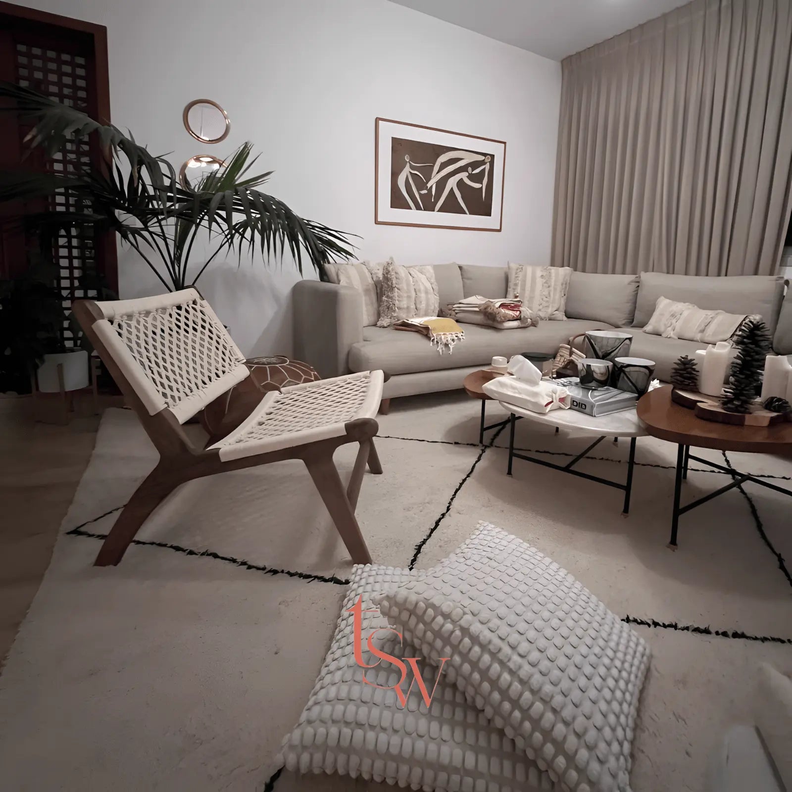 The macramé, entirely handmade, envelops the seat with lightness and refinement, creating a subtle balance between comfort and aesthetics. Each piece tells a story, one of craftsmanship, time and materials.